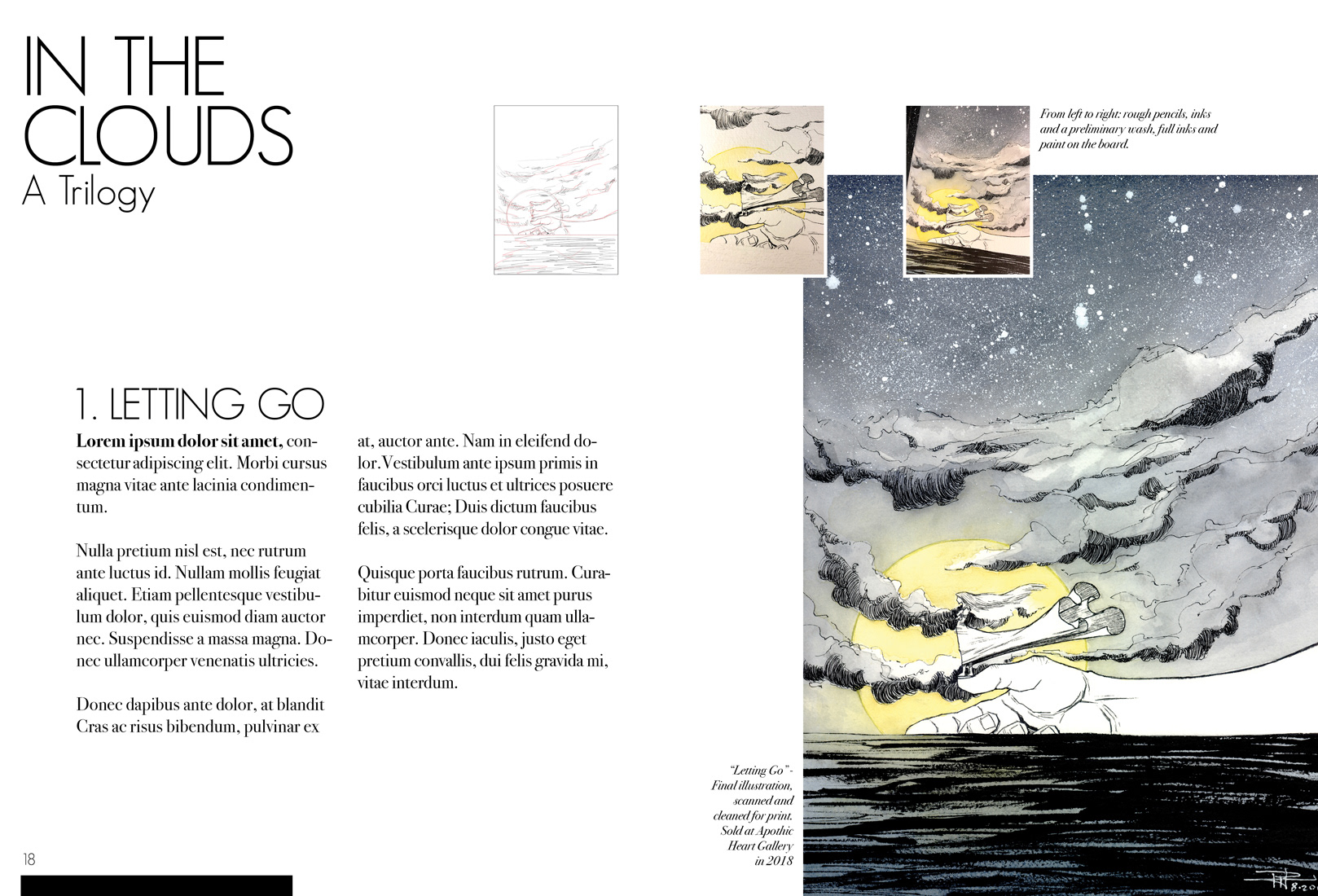 Sample spread layouts for art book.